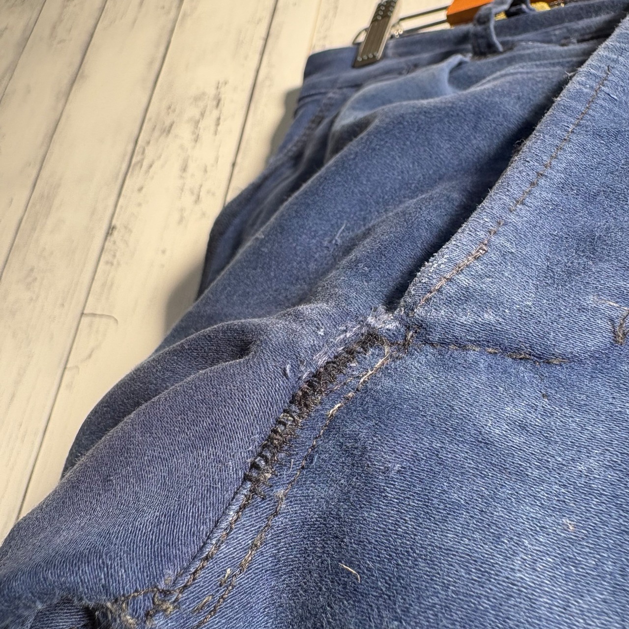 各ポケット縁、股下部分に補強のリペア跡。
