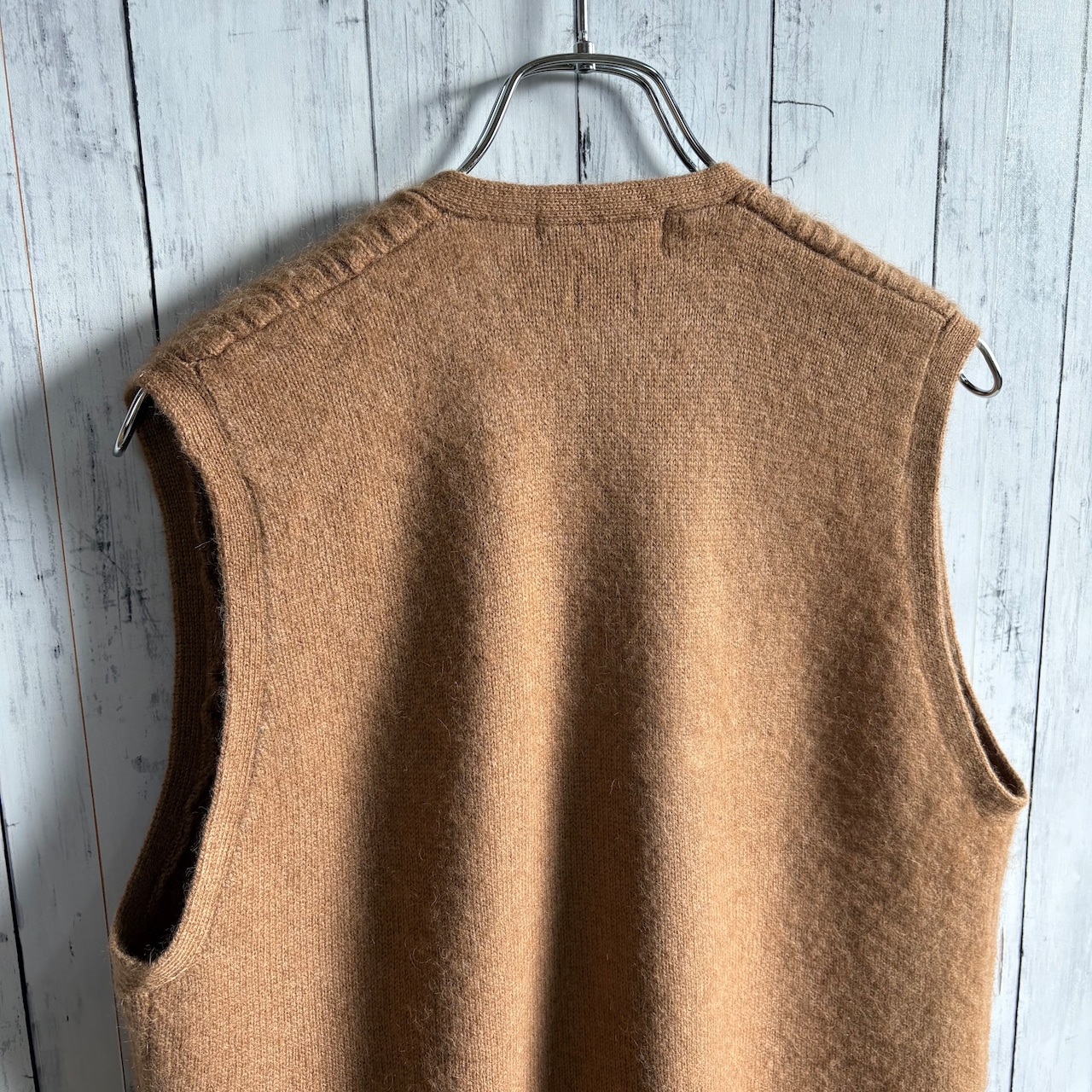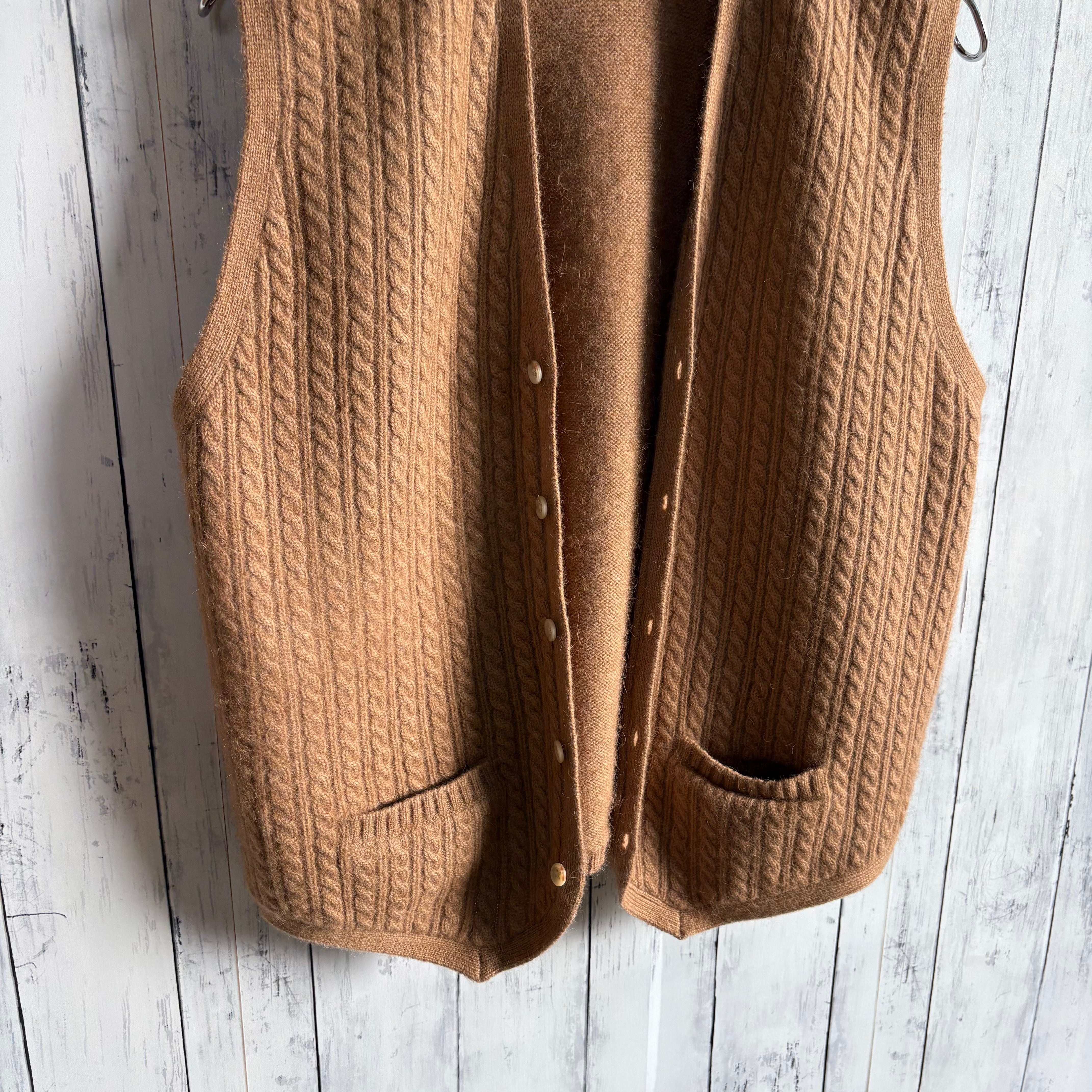 中々見かけることのないキャメルウールのニットベスト。