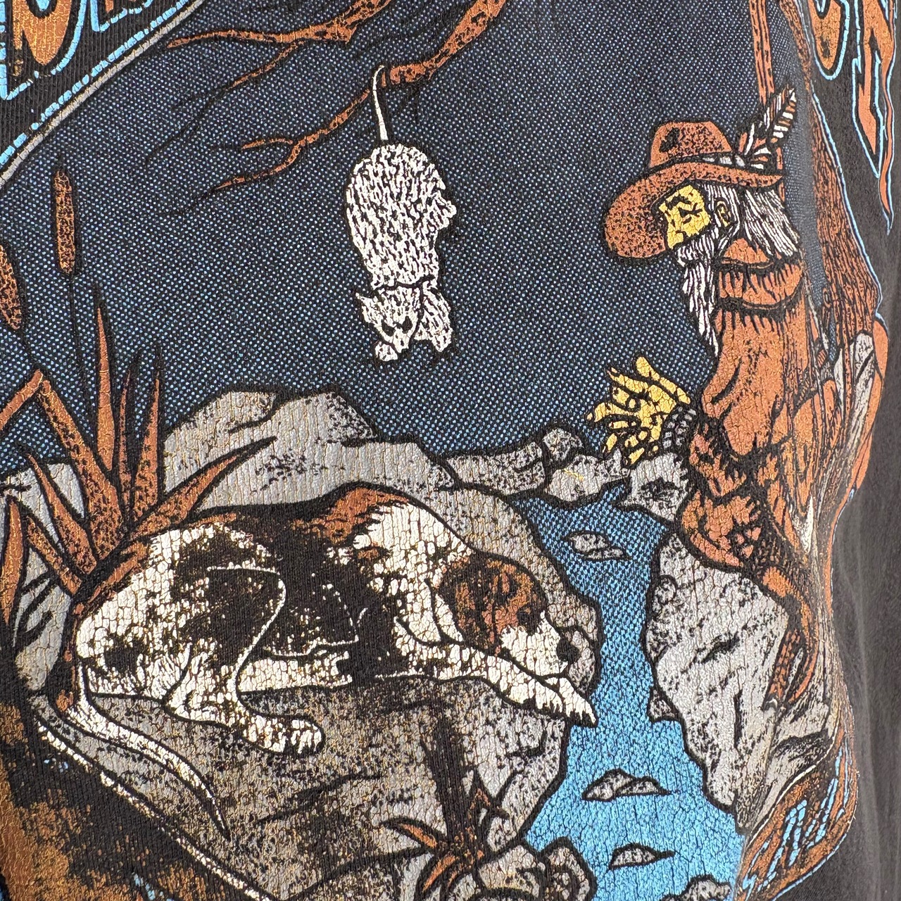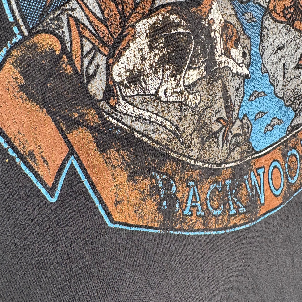 生地の毛羽立ち、擦れ感、プリントの擦れ見られますが、特にシミや汚れ、ピンホールなどのダメージ見られません。