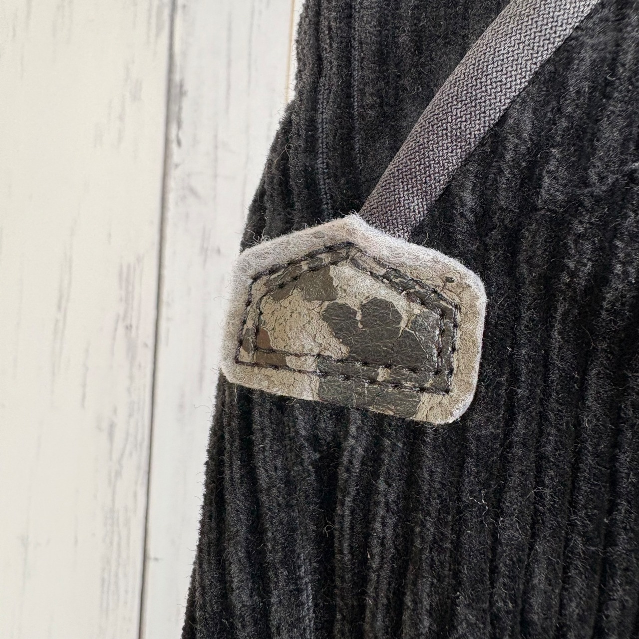縁を留めているパッチに表面の劣化ございます。