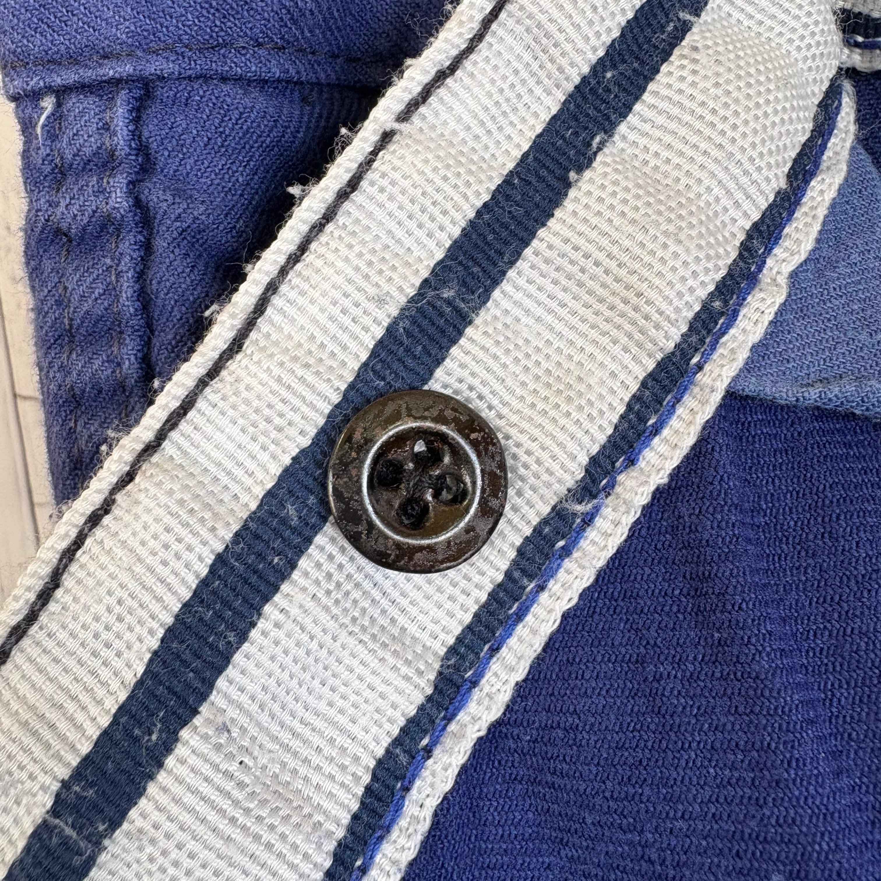 ウエスト部分にはメタルボタンでサスペンダーボタンが付き、ウエスト周りのディテールは多少の古さが伺えますが、フロントボタンの印象から70〜80s付近が妥当な印象です。